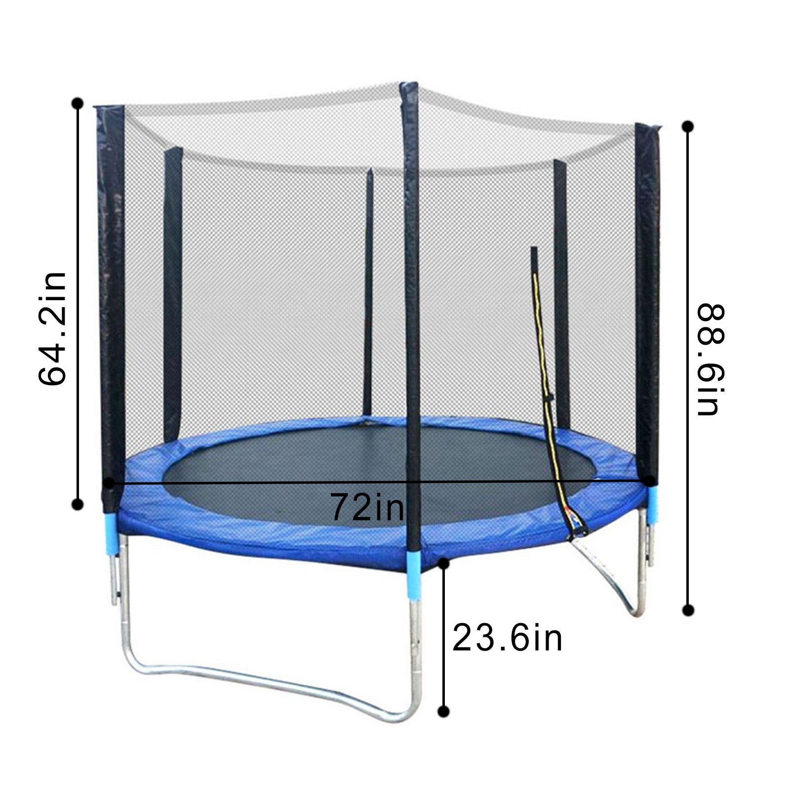 - Complete accessory kit and easy-to-assemble components: 1x machine cover, 1x jump pad, 1x protective net, 1x installation tool, 6x upper guardrail, 6x leg tube, 6x arc tube, 36x spring and required installation tools.